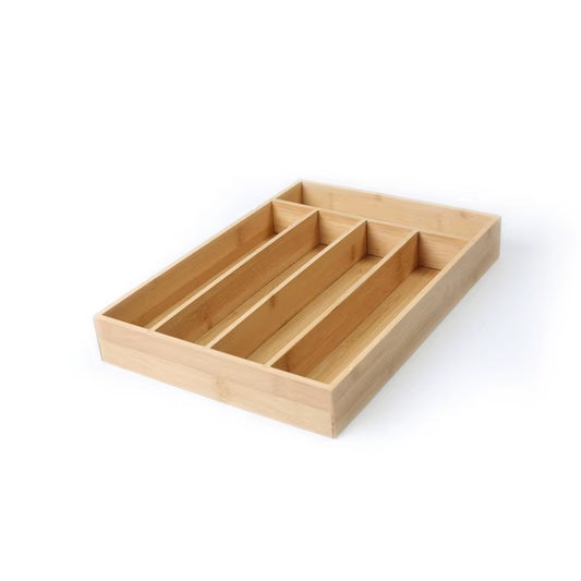 Bamboo Drawer Organizer – Five-Compartment Utensil Tray