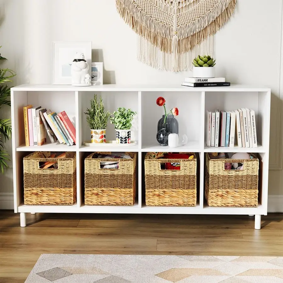 Cube shelves need storage. Plastic bins look cheap. Wire baskets show everything inside.