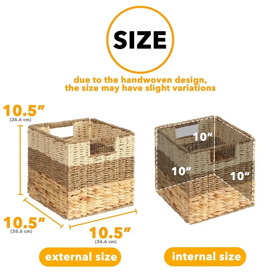 - Size: 10.5" × 10.5" × 10.5" each (fits 11" cube shelves)